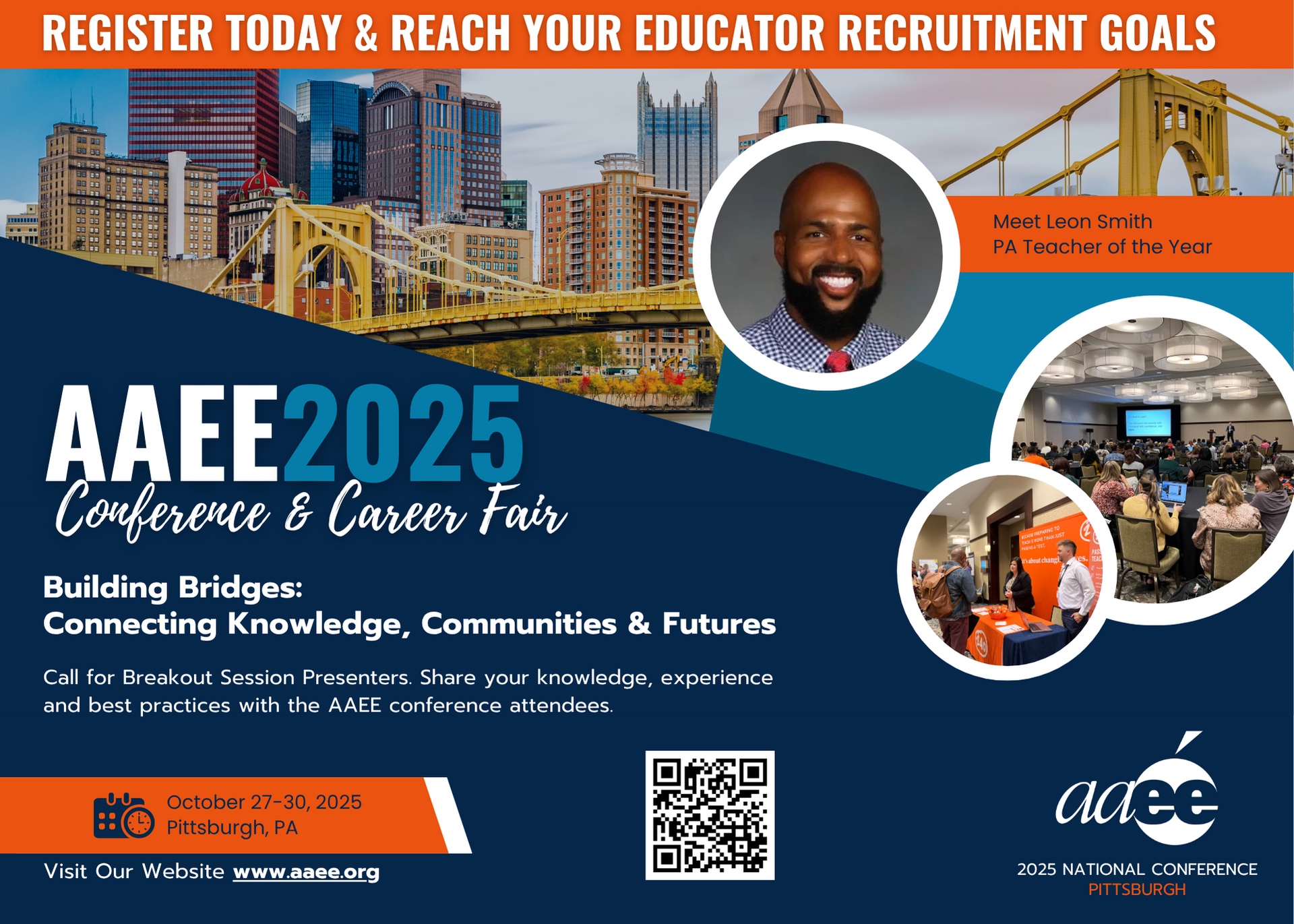 The National AAEE Conference features 25 individual breakout sessions design to engage attendees in best practices, proven strategies and research on the topics of teacher pipelines, recruitment, human resources, talent development and career resources. See our impressive list of Breakout Session & Keynote Speakers.